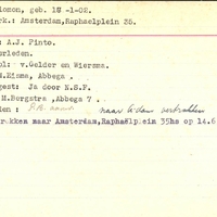Bijzonderheden: Ouders:overleden - Financ.gest.door N.S.F. - Pb aanwezig - Vertrokken naar Amsterdam,Raphaëlplein 35hs op 14-06-'45