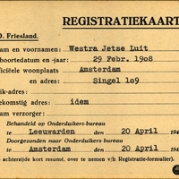 Onderduikregistratie van Jetse Luit Westra