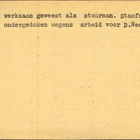Achterkant bijzonderheden: Ondergedoken wegens arbeid voor D. Weerm. - Achterkant beroep: stuurman - Achterkant naam werkgever: Stanfries