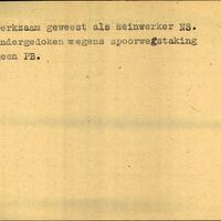 Achterkant beroep: seinwerker - Achterkant naam werkgever: NS