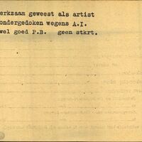 Achterkant bijzonderheden: geen stkrt. - Achterkant beroep: Artist - Achterkant naam werkgever: -