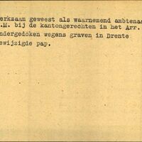 Achterkant bijzonderheden: ondergedoken wegens graven in Drenthe gewijzigde papieren. Toekomstig adres: Willemskade 14 Lwd. - Achterkant beroep: waarnemend ambtenaar O.M. - Achterkant naam werkgever: kantongerechten in het arr.Lwd.