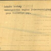 Achterkant bijzonderheden: Gehuwd met de Jong. - Geen volledige pap. - Achterkant beroep: - - Achterkant naam werkgever: -