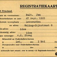 Onderduikregistratie van Jan Balt