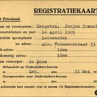 Onderduikregistratie van Jurjen Cornelis Heegstra