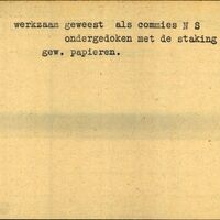 Achterkant bijzonderheden: gew. papieren - Achterkant beroep: Commies - Achterkant naam werkgever: N S