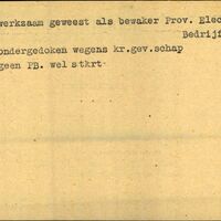 Achterkant bijzonderheden: Wel stkrt. - Achterkant beroep: Bewaker - Achterkant naam werkgever: Prov. Electr. Bedrijf