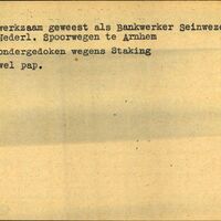 Achterkant bijzonderheden: Wel pap. - Achterkant beroep: Bankwerker Seinwezen - Achterkant naam werkgever: Nederl. Spoorwegen te Arnhem