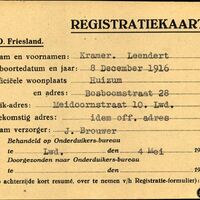 Onderduikregistratie van Leendert Kramer