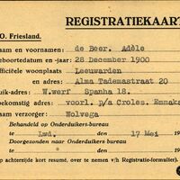 Onderduikregistratie van Adèle de Beer