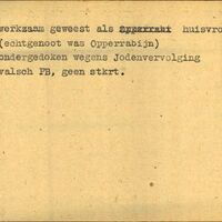 Achterkant bijzonderheden: Echtgenoot was Opperrabijn - Geen stkrt. - Achterkant beroep: Huisvrouw - Achterkant naam werkgever: -