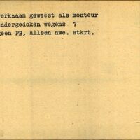 Achterkant bijzonderheden: Werkzaam geweest als monteur. - Ondergedoken wegens ?. - Geen PB, alleen nwe. stkrt. - Achterkant beroep: monteur