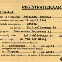 Onderduikregistratie van Doekele Huizinga
