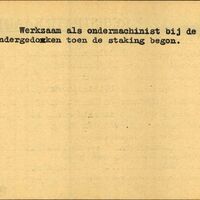 Achterkant bijzonderheden: Werkzaam als ondermachinist bij de N.S. - Ondergedoken toen de staking begon. - Achterkant beroep: ondermachinist - Achterkant naam werkgever: N.S.