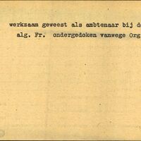 Achterkant bijzonderheden: Ondergedoken wegens Org. T. - Achterkant beroep: Ambtenaar - Achterkant naam werkgever: alg. Fr.