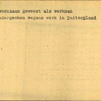 Achterkant bijzonderheden: Achternaam onderduiker bevat 2 voorvoegsels maar volgens allefriezen.nl betreft het hier Jan van Hijum, dus met 1 voorvoegsel. - - ondergeoken wegens werk in Duitschland - Achterkant beroep: Werkman - Achterkant naam werkgever: -