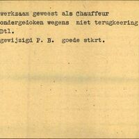Achterkant bijzonderheden: ondergedoken wegens niet terugkeering naar Dtl. - gewijzigd P. B. goede stkrt. - Achterkant beroep: Chauffeur