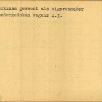 Achterkant bijzonderheden: werkzaam geweest als sigarenmaker - ondergedoken wegens A.T