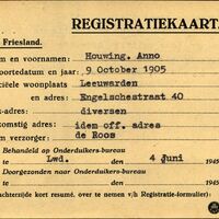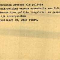 Achterkant bijzonderheden: Ondergedoken wegens arrestatie van S.D. - Daarna door politie losgelaten en gezamenlijk ondergedoken. - Geen stkrt. - Achterkant beroep: Politie - Achterkant naam werkgever: Politie