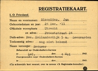 Onderduikinschrijving van Jan Simonides