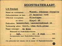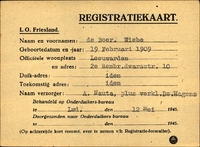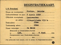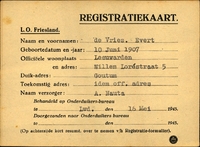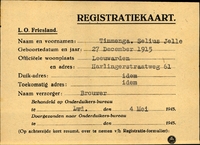 Onderduikinschrijving van Pieter Leonardus Hubbeling