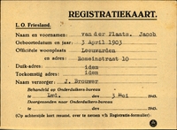 Onderduikinschrijving van Jacob van der Plaats