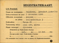 Onderduikinschrijving van Leendert Cornelis Veldhoen