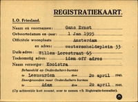 Onderduikinschrijving van Ernst Gans