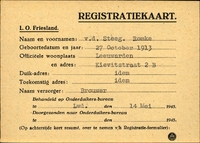 Onderduikinschrijving van Romke v.d. Steeg