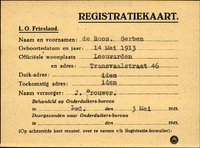 Onderduikinschrijving van Pieter Boonstra