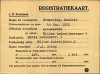 Onderduikinschrijving van Hendrik Brunsting
