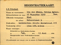 Onderduikinschrijving van Petrus Egbertus van der Steen