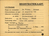 Onderduikinschrijving van Cornelis Willem Vermeulen