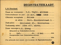 Onderduikinschrijving van Abraham v.d. Vegte