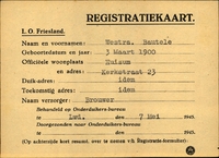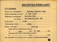 Onderduikinschrijving van Willem Lukas Hendrik v.d. Meer