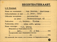 Onderduikinschrijving van Hubert Louis Marie Lemmens