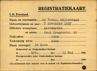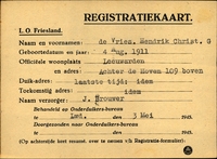 Onderduikinschrijving van Hendrik Christ. G de Vries