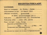 Onderduikinschrijving van Willem Frieswijk