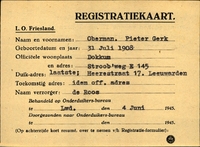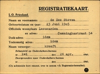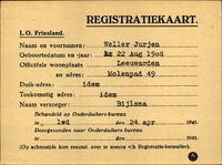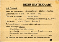 Onderduikinschrijving van Pieter Jurjen Speerstra