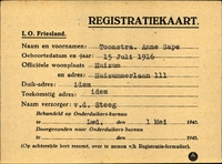 Onderduikinschrijving van Anne Sape Toonstra