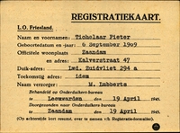 Onderduikinschrijving van Pieter Tichelaar