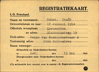 Onderduikinschrijving van Izaäk Cohen