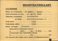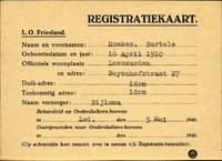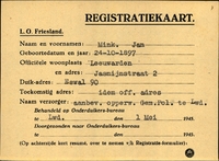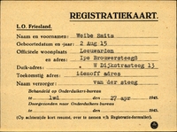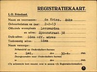 Onderduikinschrijving van Johan Henderikus Veenstra