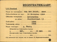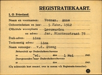 Onderduikinschrijving van Anne Veeman