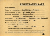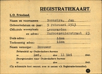 Onderduikinschrijving van Jan Boonstra