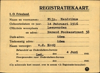 Onderduikinschrijving van Johannes Hendrikus Rommers
