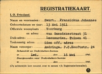 Onderduikinschrijving van Fransickus Johannes Swart