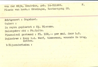 Onderduikinschrijving van Hendrina van der Wijk