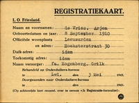 Onderduikinschrijving van Pieter Verhoeff