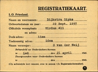 Onderduikinschrijving van Sipke Dijkstra